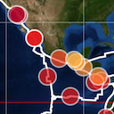 This sample demonstrates working with different data on the map. It starts with a map that has a Blue Marble background layer.